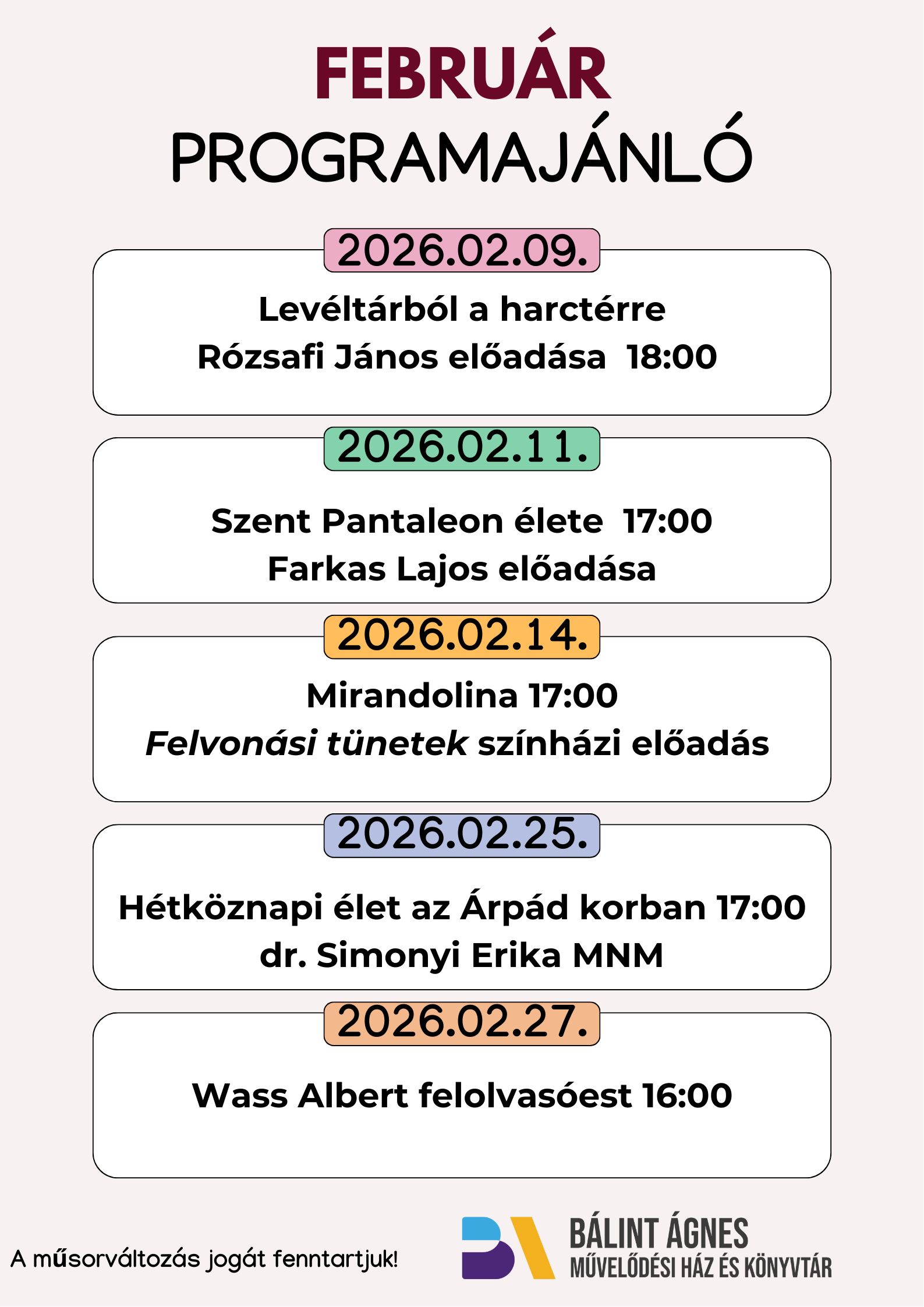 FEBRUÁR-PROGRAMAJÁNLÓ