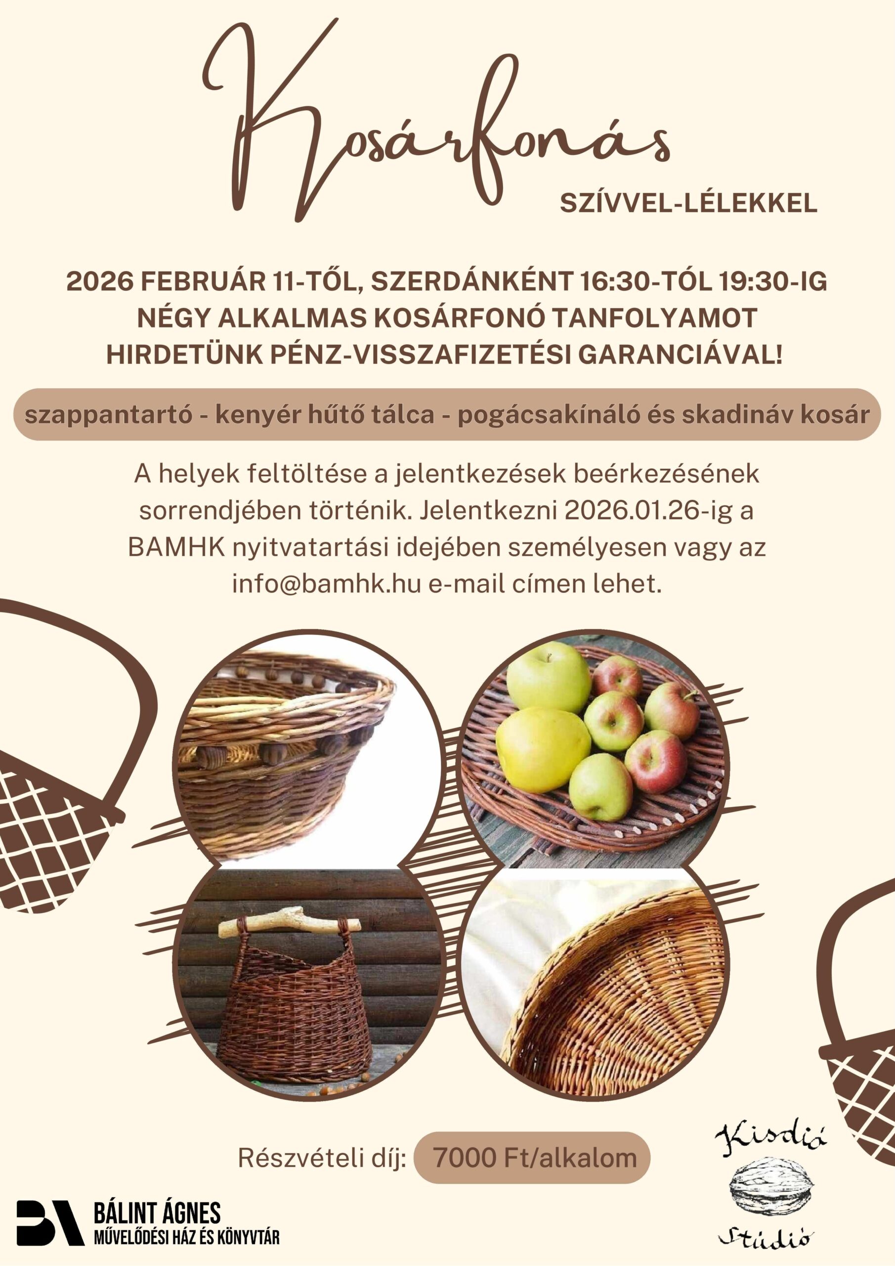 Február 11-tól, szerdánként 16:30-tól 19:30-ig négy alkalmas. Szeretettel várunk minden kedves érdeklődőt!
